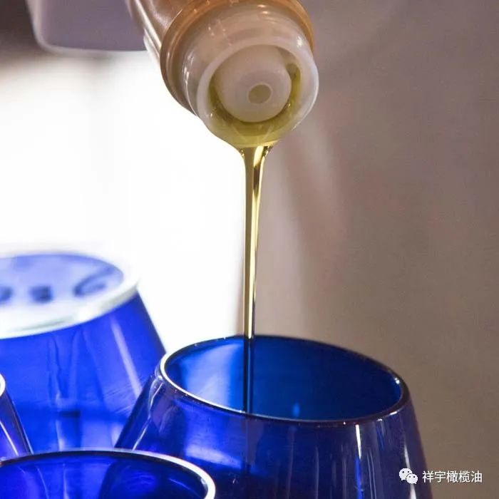 采用藍(lán)色郁金香型橄欖油品鑒專用杯。